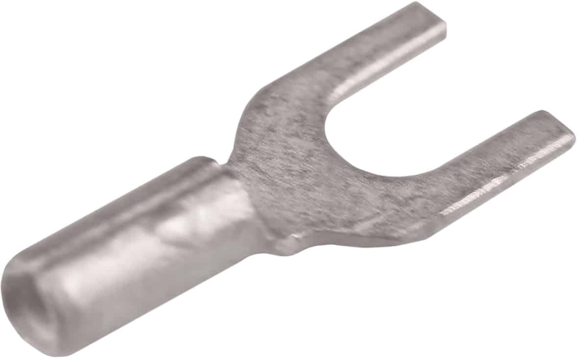 Elpress un-insulated fork terminals are manufactured from high-purity copper (99.95%) with a durable tin-plated (Cu/Sn) finish to provide excellent electrical conductivity and long-term corrosion resistance. The open fork design allows quick and easy installation or removal from screw connections without fully unscrewing the fastener, saving time during assembly and maintenance.
